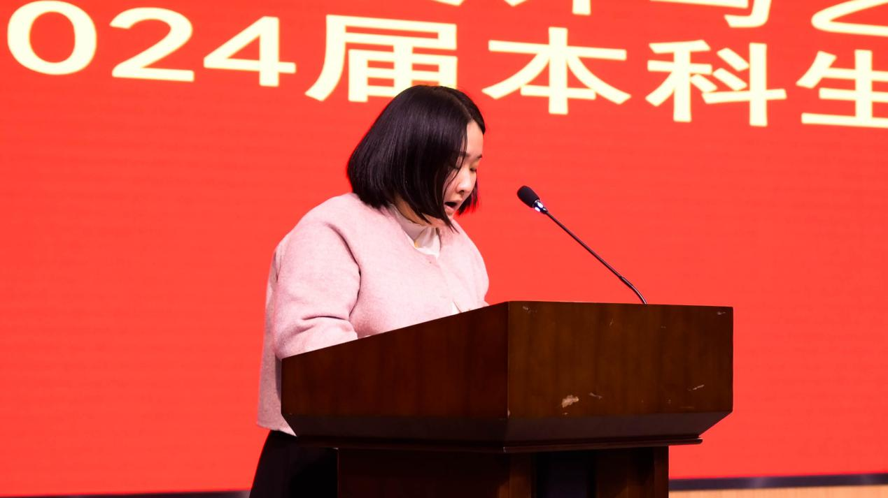 大会由副经理刘光晓主持,共有四项议程,第一项议程,考研优秀员工代表本科艺术1801班董博文、本科产品设计1802班范湉湉以VCR的形式分别作了考研经验交流。董博文同学分享了考研公共课和专业课的学习方法,范湉湉同学分享了自己的备考技巧和研究生生活,鼓励师弟师妹们树立考研信心,争取一战成硕。第二项议程,员工代表本科环境设计2004班孙晓雯同学上台发言,她告诉同学们要结合自身的情况明确自己的定位,放平心态地去选择考研方向,持之以恒,不骄不躁,扎实的付出定能取得胜利的曙光。第三项议程,学院辅导员唐小芳老师作考研动员讲话。她指出辅导员应开展好员工考研的指导工作,找准切入点、关键点与保障点,在合适的时间点抓住员工的考研动机并进行切实的引导。第四项议程,公司经理李海龙作总结讲话。他介绍了近五年来学院的考研情况,又深度解读了学校相关考研政策,最后提出三点建议,一是提醒同学们认识到考研对自身发展的重要性,他语重心长的讲到人生没有重来,要珍惜求学时光;二是鼓励同学们将自身的崇高理想与国家、社会的发展结合起来,立大志,成“大写的人”,提高自身素质,为国家和社会作出应有贡献;三是强调考研成功与否取决于坚持与否,勉励所有同学坚定目标,坚持到底,并最终取得满意成绩。