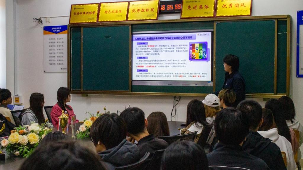 活动开场,主持人点明电影与心理学相结合的独特意义,强调此次观影活动是一次深入探索内心世界的特别旅程,并邀请丁嘉琳老师为同学们解读影片《头脑特工队》背后隐藏的心理学奥秘。丁老师凭借专业的知识和精彩的分享,为同学们打开了通往电影深层含义的大门,让大家对影片充满期待,也让同学们深刻认识到此次观影是一次心灵的探索与学习。
