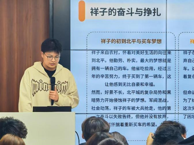 讨论环节中,辅导员程治文老师引导同学们从不同角度解读作品,并鼓励大家将书中的智慧融入实际生活。同学们积极发言,现场氛围温馨而热烈。活动结束后,大家纷纷表示,此次“阅读吧”不仅让他们感受到文学的魅力,还在交流中收获了思想的碰撞与情感的共鸣。