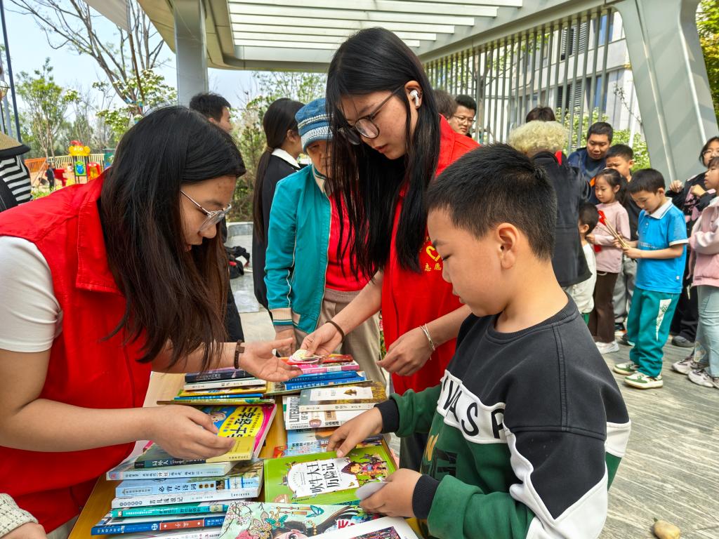 活动伊始,青少年纷纷带着家中的闲置书籍来到现场,向大家分享自己的读书心得,这些曾被反复摩挲的纸页在分享环节重新焕发生机。随后,捐书环节延续着文字的温度,志愿者根据书籍的品类、新旧程度等情况,为他们兑换相应数量的图书币。这些图书币不仅是“货币”,更是知识传递的象征,承载着旧书开启新阅读旅程的希望。